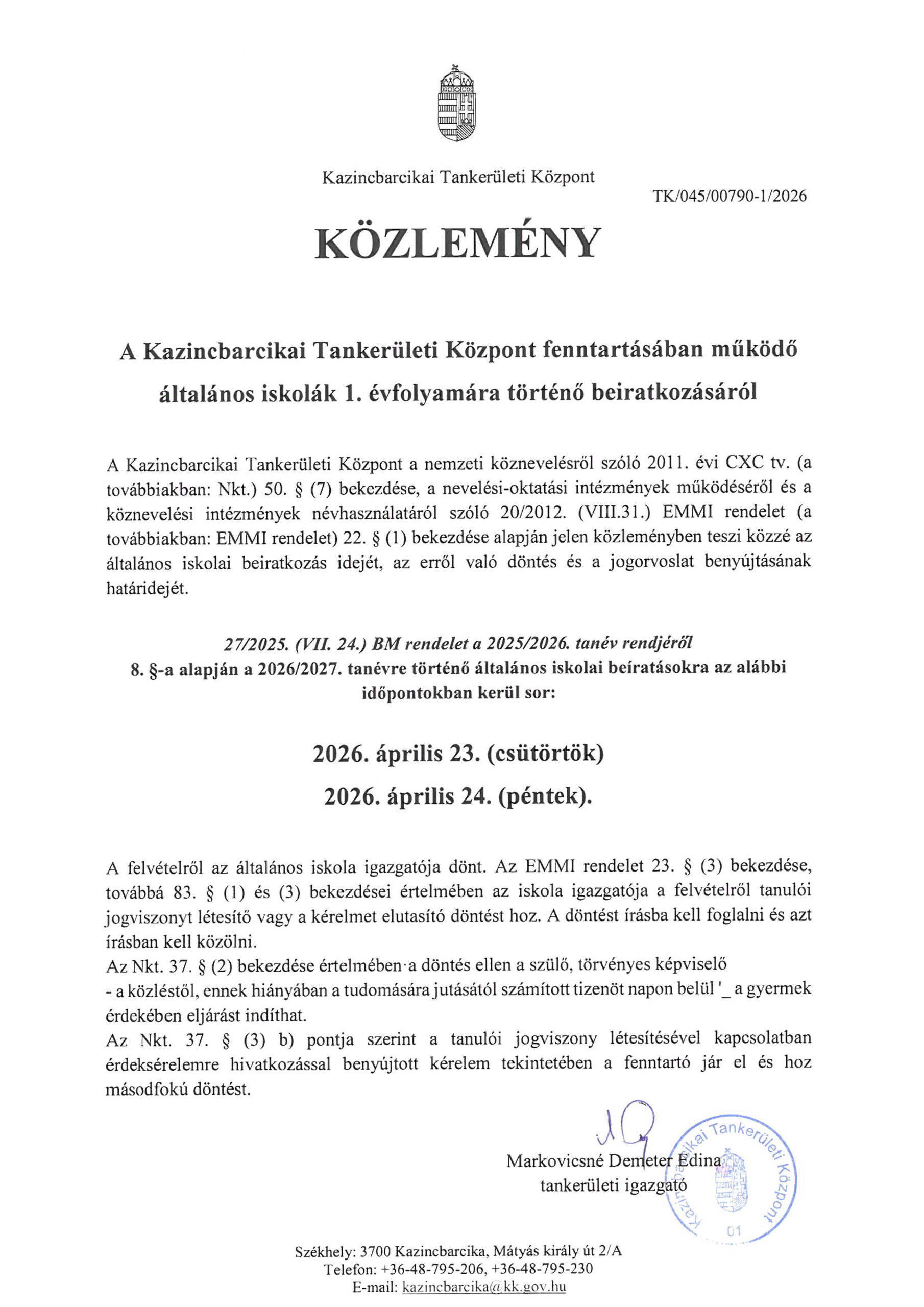 Tájékoztatás a 2025/2026 tanév tavaszi szünetben igénybevehető szünidei...