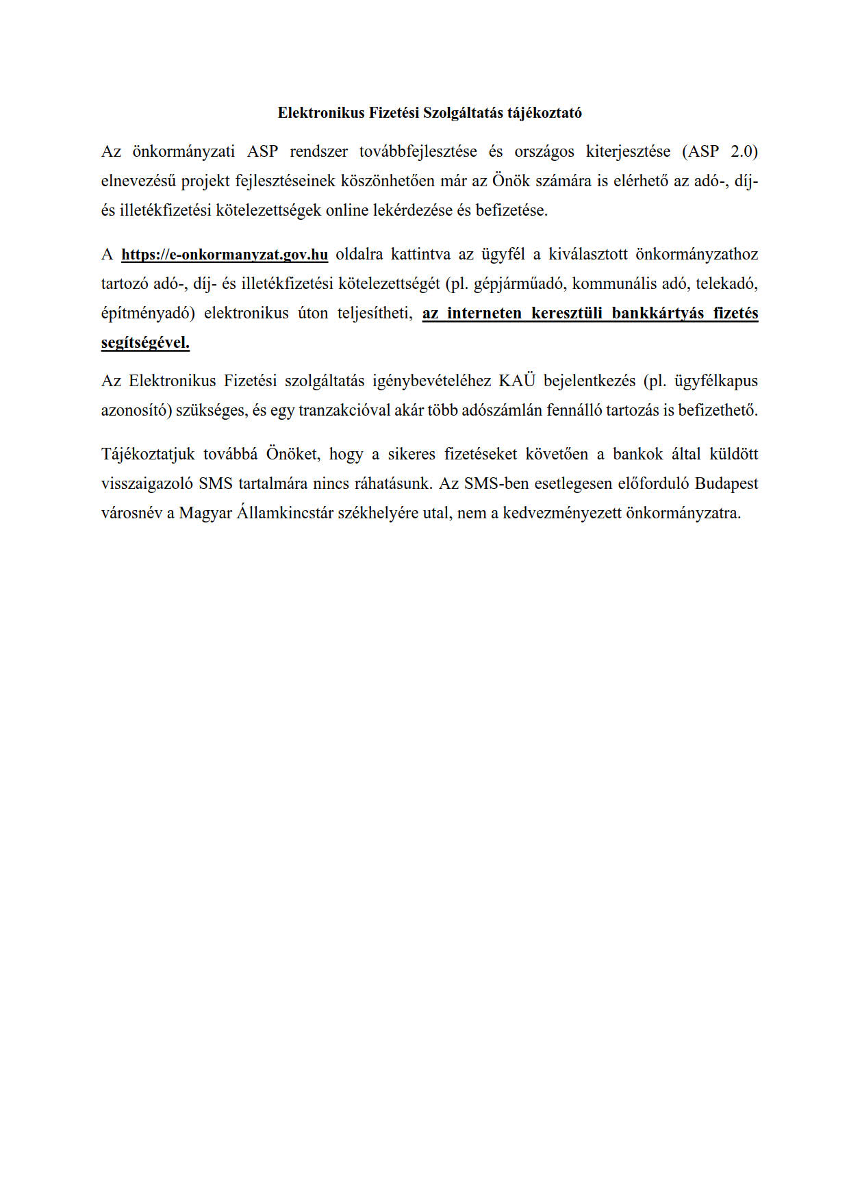 Elektronikus Fizetési Szolgáltatás tájékoztató